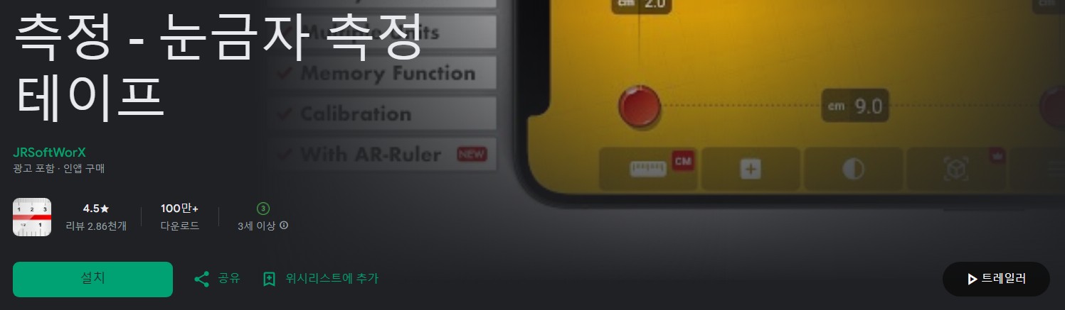 - 어찌 길이를 잴 수 있을까 고민하다가 앱이 있나싶에 검색해서 여러개를 사용해 봤는데요. 이 줄자가 진짜배기 네요. 앞으로도 쭉 사용할것같아요