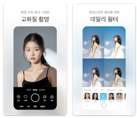 - 자연스러운 피부 보정: 다른 뷰티 카메라 앱들과 달리 과도하게 수정되지 않고 자연스러운 보정을 제공합니다.