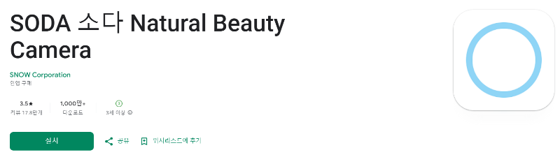 SODA는 SNOW의 자회사로, 다양한 뷰티 및 사진 관련 앱을 선보이고 있으며, 이 앱은 특히 자연스러운 셀카 촬영에 특화되어 있습니다.