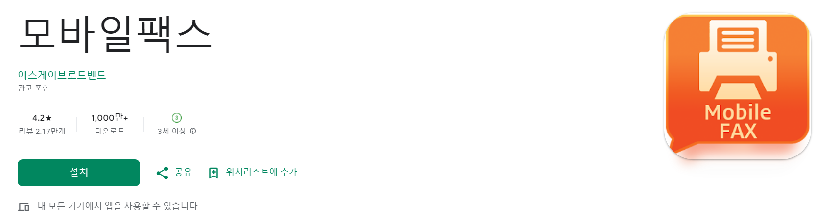 - 안드로이드 다운로드: 구글 플레이스토어에서 '모바일팩스'를 검색하여 다운로드합니다.