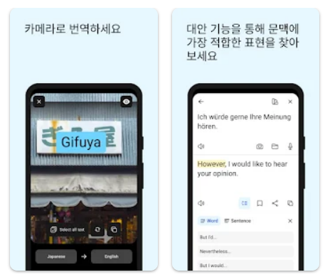 - 직관적인 사용법: 이미지 내 텍스트를 앱에 업로드하거나, 사진을 찍어 바로 번역할 수 있어 번역의 접근성이 매우 높습니다.