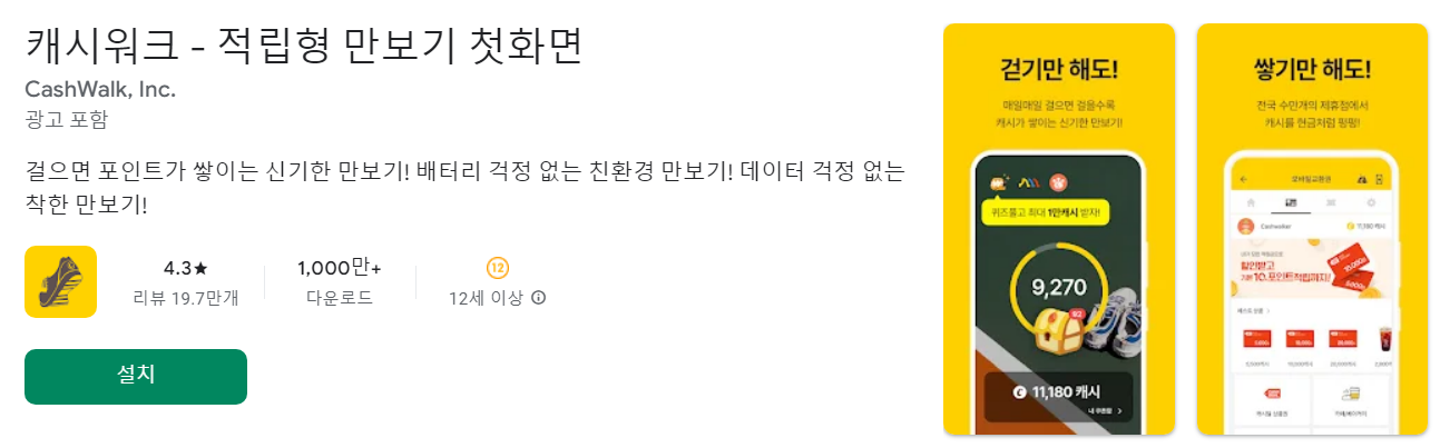 캐시워크 어플- 걷기만 하면 돈이 쌓이는 인기 만보기 리워드앱