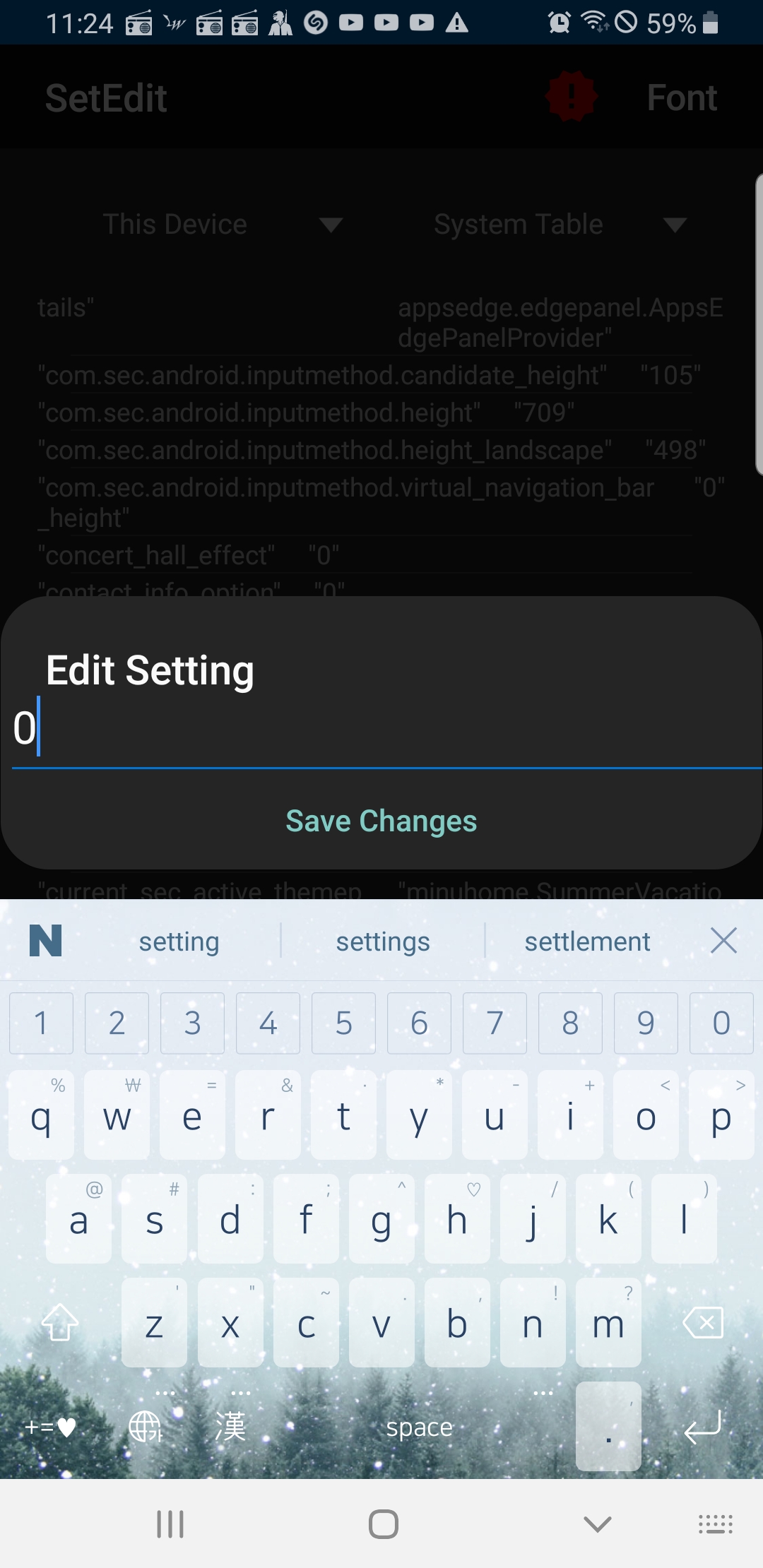 이 단계에서 Edit Setting값을 "0"을 입력하여 Saving changes을 클릭합니다. 지금 알려드리는 방법은 안드로이드 11 이상의 휴대폰에게 루팅 없이 카메라 촬영음을 없애주는 방법입니다.