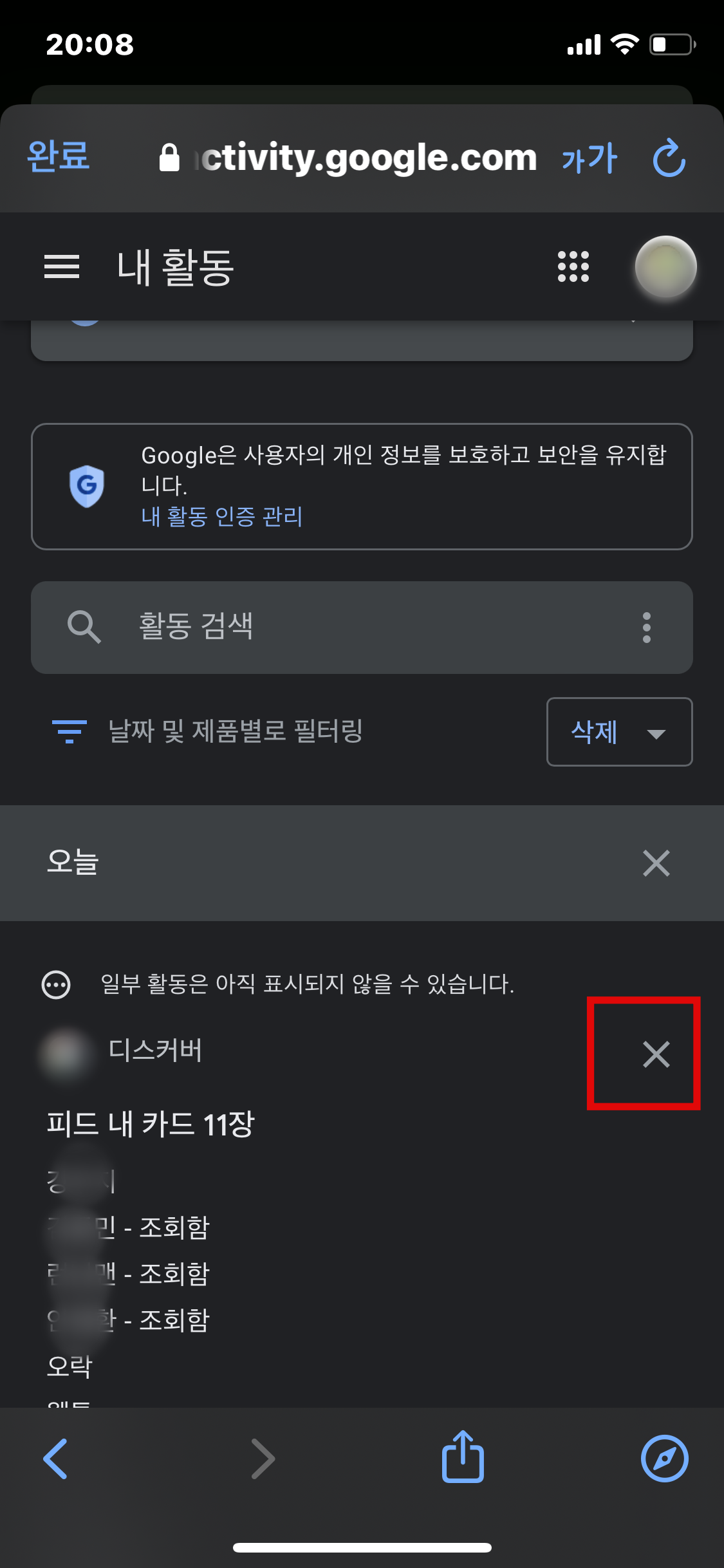 1. 구글 검색기록 삭제