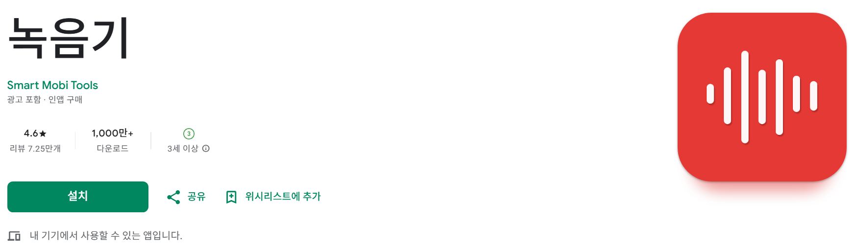 녹음 품질이 안정적이고 녹음 중 끊김이 없으며, 시간제한 없이 오프라인에서도 사용할 수 있어 실용성이 높습니다. 복잡하지 않은 구성으로 누구나 쉽게 사용할 수 있는 유용한 녹음 앱입니다.