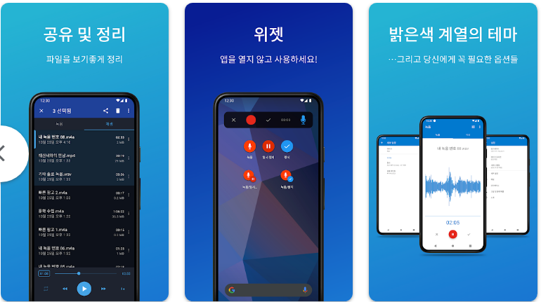 - 빠른 녹음 시작: 위젯과 바로가기를 통해 신속하게 녹음 시작, 백그라운드 녹음 지원